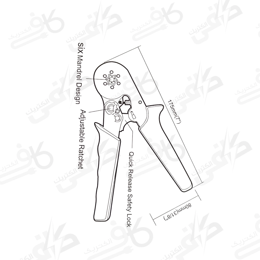 فک های اصلی انبر پرس وایرشو شش گوش از شش قسمت که فولاد ضد سایش است تشکیل می شود تا از طول عمر بالایی برخوردار باشد.