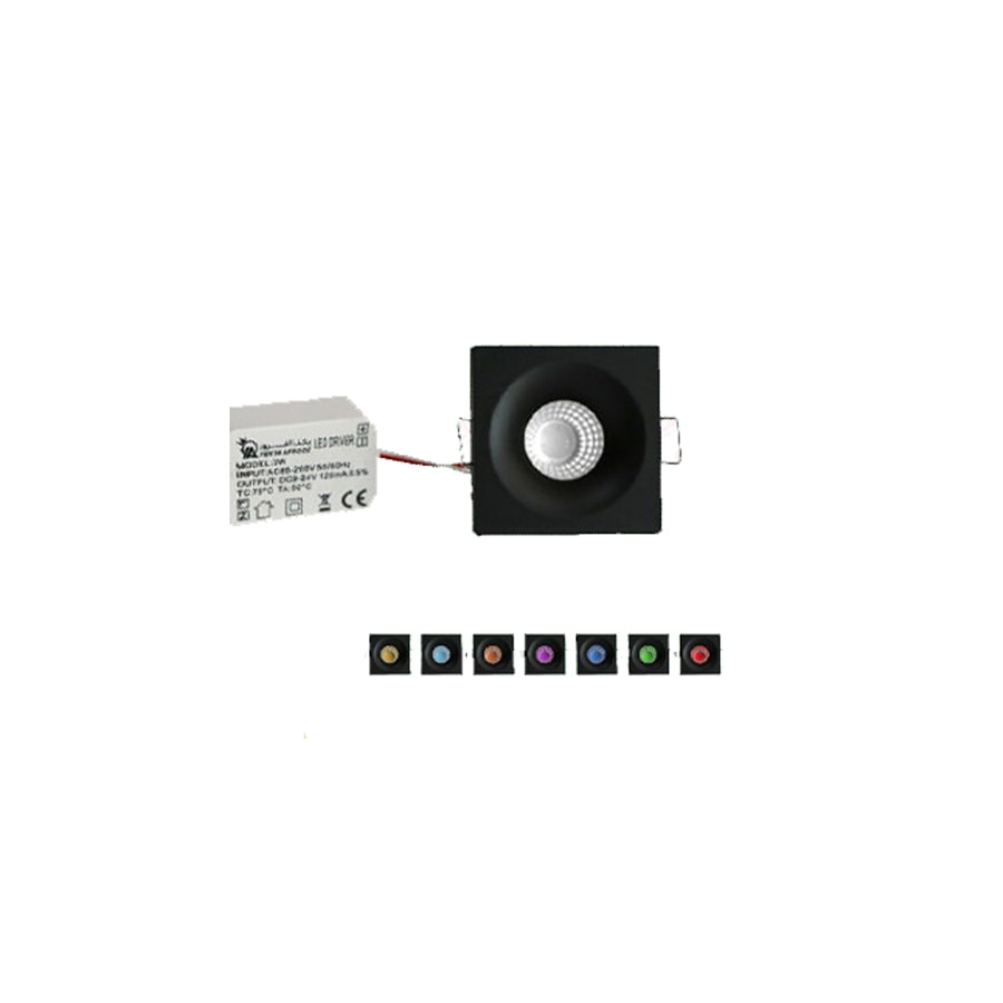 چشمی 3 وات COB | مربع توکار |بدنه مشکی | یکتا افروز