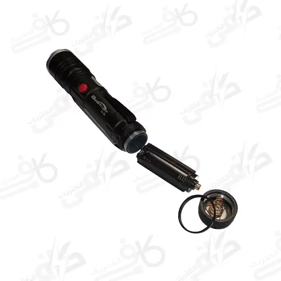 چراغ قوه T6-26 از قوی ترین و محبوب ترین چراغ قوه موجود در بازار است که قابلیت هایی همچون زوم نور، چراغ نواری اضططراری، مگنت نگه دارنده، گیره برای اتصال به لباس، مقاوم در برابر آب و ضربه، نوردهی تا 300 متر و… دارد. T6-26 باتری خور است و ازیک باتری 18650 شارژی و یا از سه باتری نیم قلم استفاده میکند. این چراغ قوه دکمه تنظیم حالت نور مهتابی به صورت های کم، زیاد و چشمک زن دارد و میزان روشنایی آن تا 2800 لومن و بسیار پرنور است. چراغ قوه T6-26مناسب برای گشت شبانه، پیاده روی، کوهنوردی، سفر و… میباشد و میتوان آن را به صورت دستی و آویزی استفاده نمود. لازم به ذکر است جهت شارژ باتری شارژی چراغ قوه از کابل شارژ MICRO USB (موجود در بسته بندی) به مدت 2 ساعت استفاده کنید.